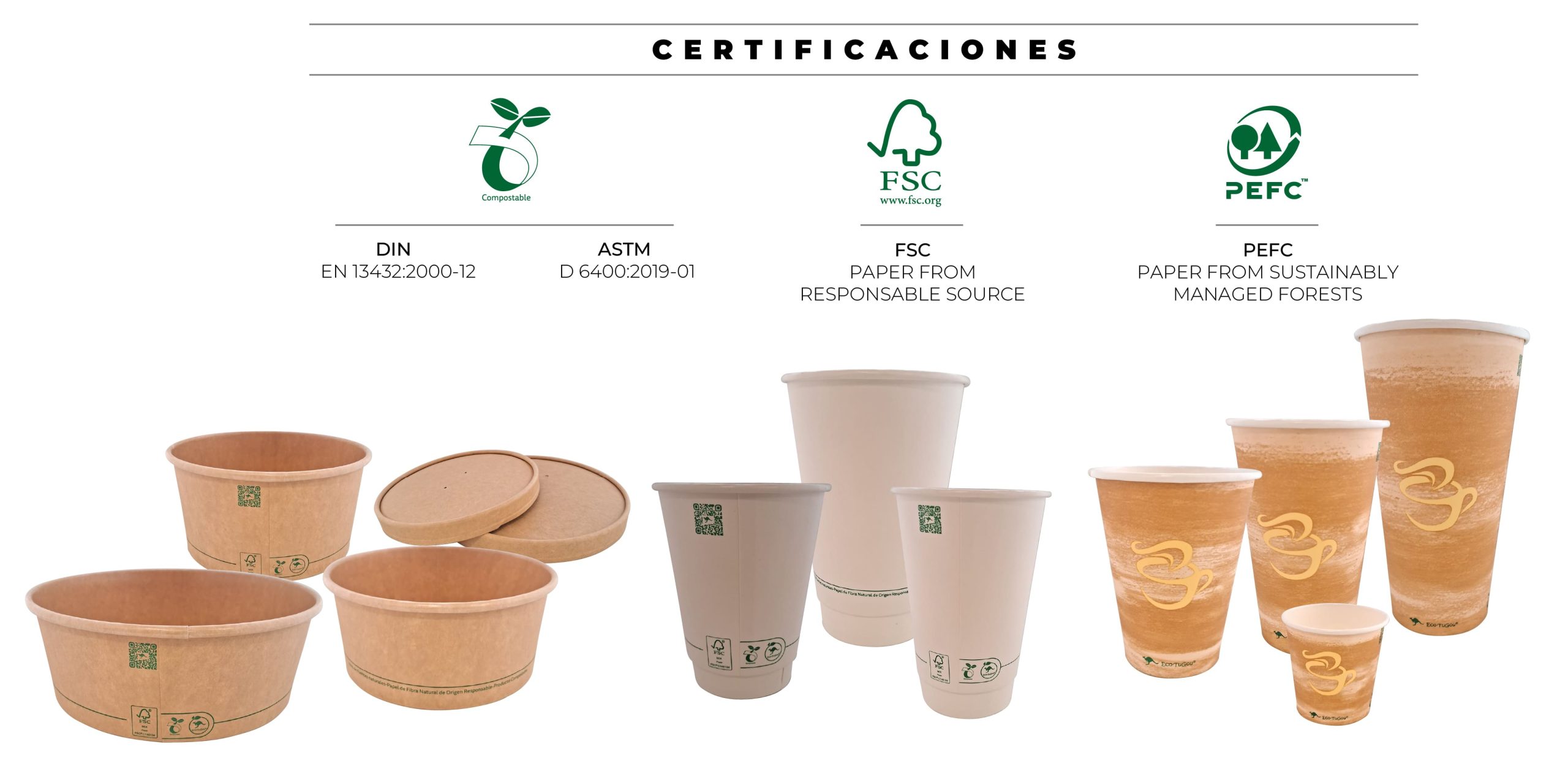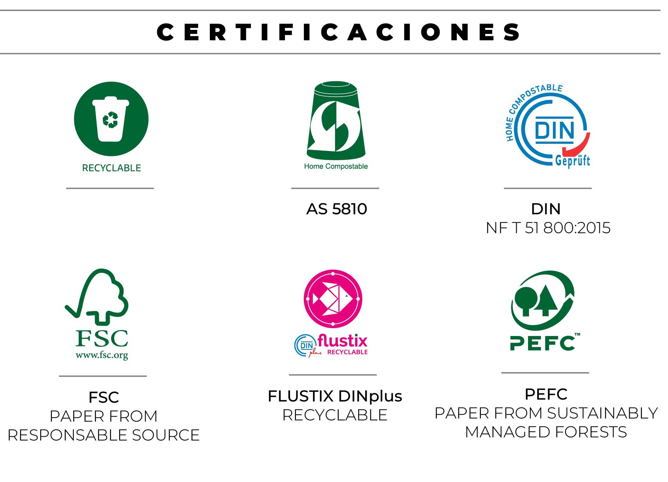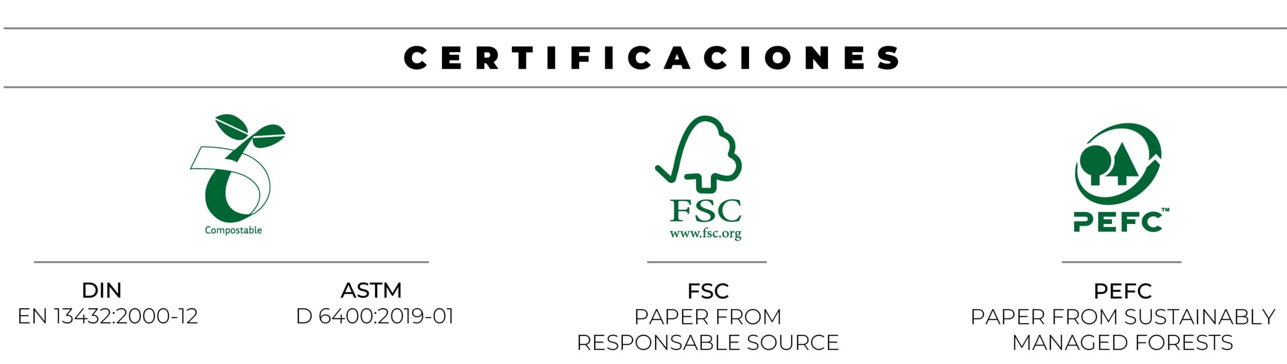 Producto fabricado en papel 100 de fibra virgen, material inherentemente biodegradable y libre de plásticos.